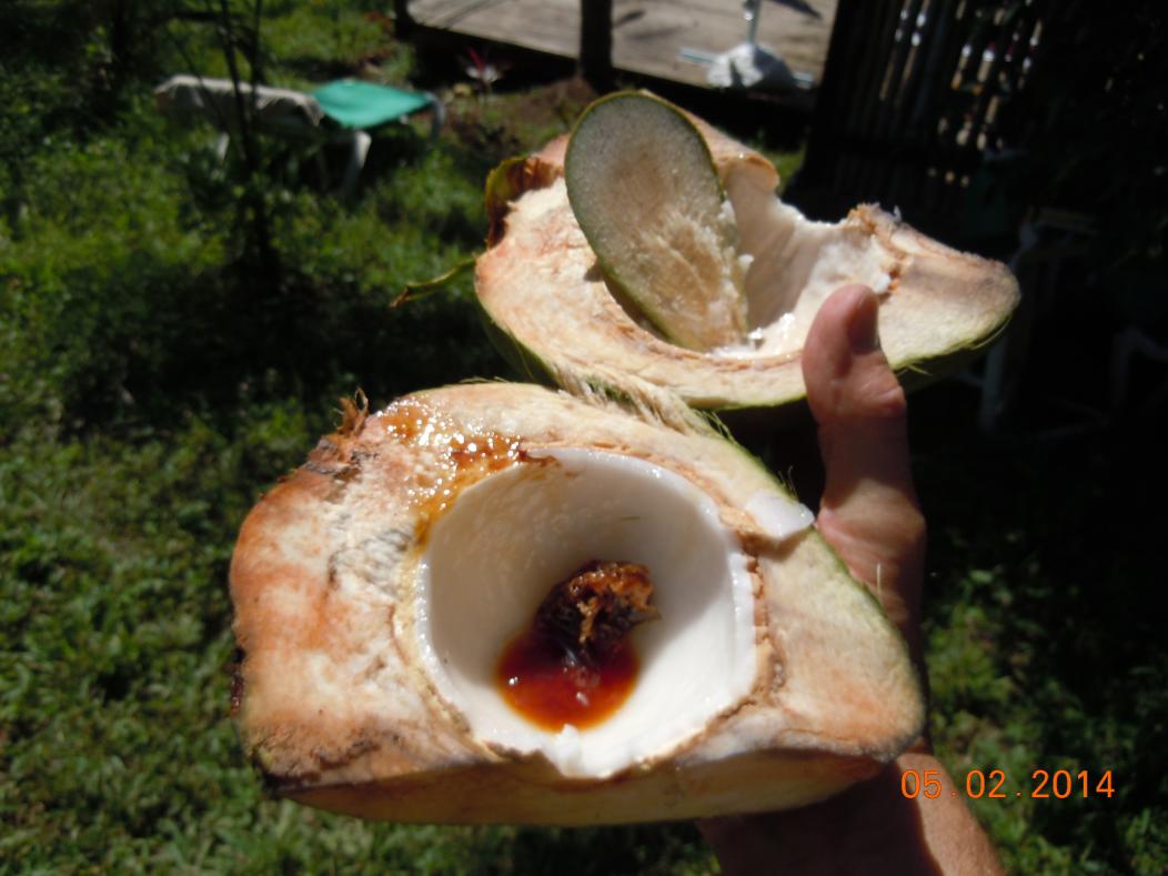 The tour can be hot, but I would not let that deter you from going. To help us cool down, we drank some coconut water (fresh from the tree) and we sat in the shade by the bamboo benches that I posted. When we got back to the main house we were give some cold sorrel drink, as well.