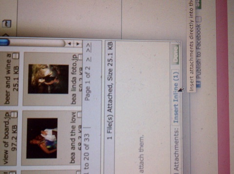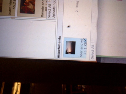 Just tryed another test by clicking on the paperclip, my photos came up, I clicked the box in the corner, but I did drag it down below.