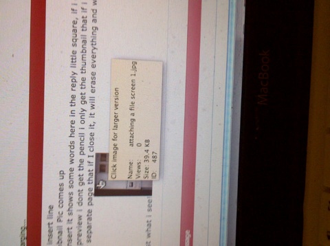 after i insert it shows some words here in the reply little square, if i dont preview post i cant see anything and if i preview i dont get the pencil i only get the thumbnail that if i click on it it gets bigger but on another separate page that if I close it, it will erase everything and will have to start from scratch!