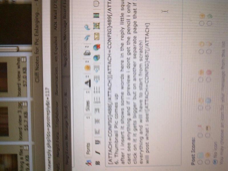 Thanks for all the help sprat, but no matter what I do I can't get a larger picture. I think that this new board has made MANY things MUCH more difficult to do.