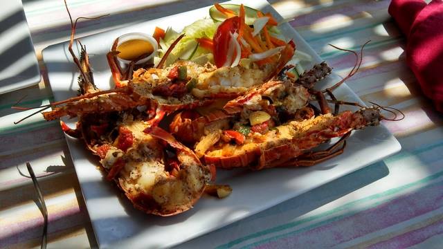 My wife and I saw Garfield the spear fisherman come in with his catch, he had lots of lobsters. We bought 4 and walked over to Country Country per Garfield's recommendation and gave them to the chef. He made 2 lunch plates. Here is what he did with them for $20.00Attachment 35534