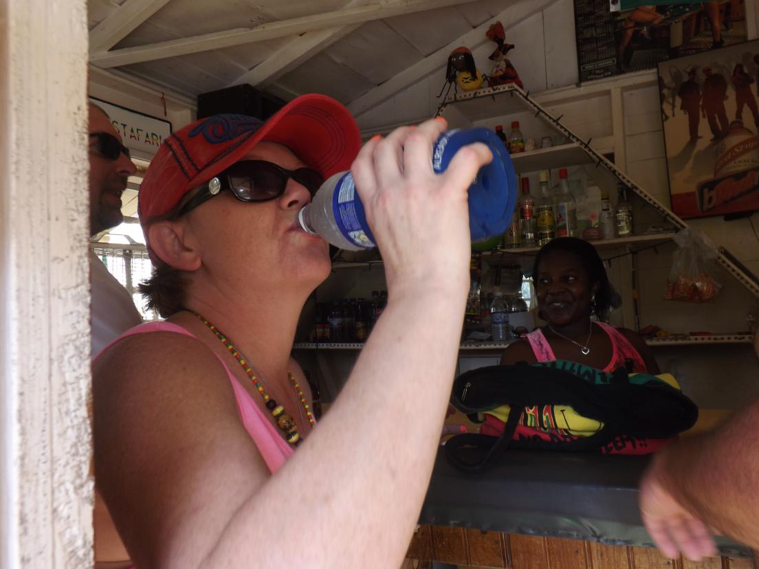 It is time for a late lunch....steve positive, the driver, is at red dragon, so we get him to take us to Ahhbee's for burgers and brownies....when we get there, we run into carolyn, Rick and carloyns kids....negril really is a small town, lol...somehow it was declared fireball time...i just noticed something...someone different has the fireball in each picture...lol...