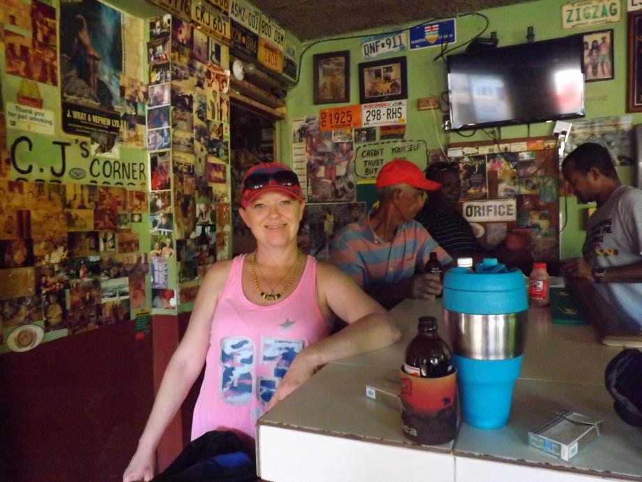 we walk to the road, grab a taxi and head to red ground...we get dropped off at collettes bar....