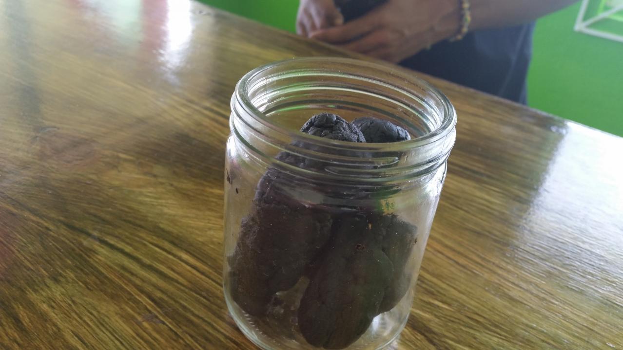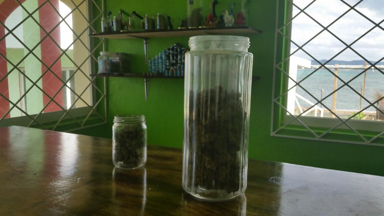 see the little blue containers in the 1st pic...each contain either 1 gram of hash or wax....10-15 per gram....10 per gram for the high grade... the prices were high for the bud, but I found better for a lot less on the way to negril...and the cookies i got were made with lots of butter.....came with a warning....do not consume alcohol with them...lol...