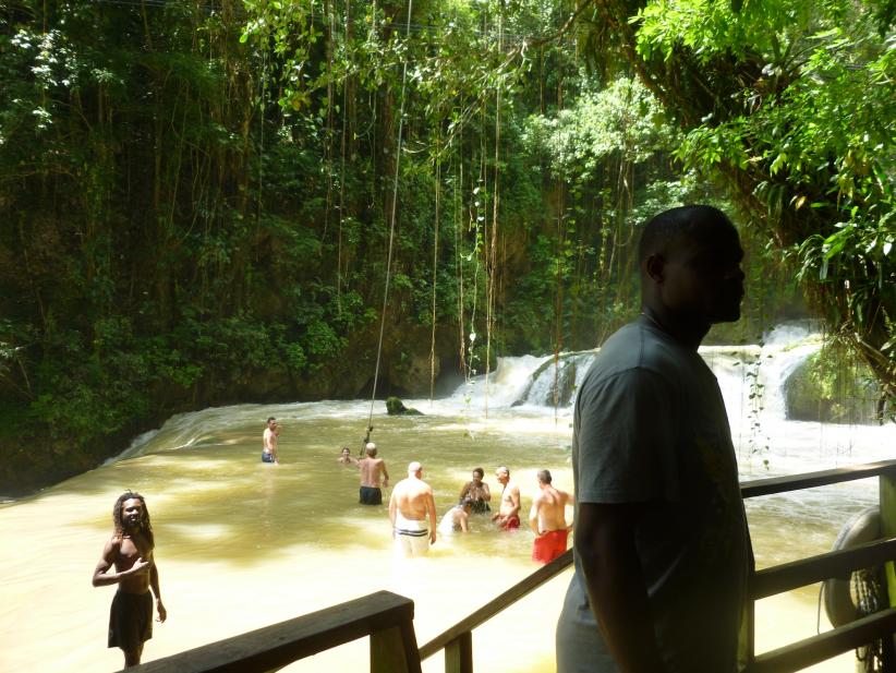 They have a rope swing that I just had to do, twice. You couldn't see 6 inches into the water, so I had to take the guides word that all was good. Once you land the current takes you down towards the people as well as the side where you jumped from, so be prepared to swim. For some reason I thought that you could actually swing on the vines you see hanging, but it's actually just the rope. Still good times! They provide gloves and I would recommend some water shoes as well.