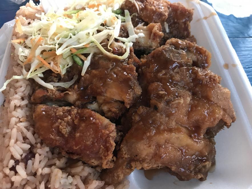 After chilling a bit we all decided to walk down the beach, with the destination of the corner bar in mind. We need to go to hilo for a few supplies too. DH stopped at a shop along the way to shop for drums to add to our JA drum collection at home. We hit Bourbon Beach for cold Red Stripe and some rum punch. yummy on a hot day. I have been craving the fried chicken from corner bar for 2 years. Something was different with the chicken this time and it had some kind of sauce on it (BBQ?) It was still delish, just different. I shared by chicken with 2 little puppies that stopped by our outside table. They were street smart. I put 10 fries on the pavement for them and they didn't eat them and instead only wanted chicken. First time I saw that happen. Attachment 48197Attachment 48198Attachment 48199Attachment 48200Attachment 48201