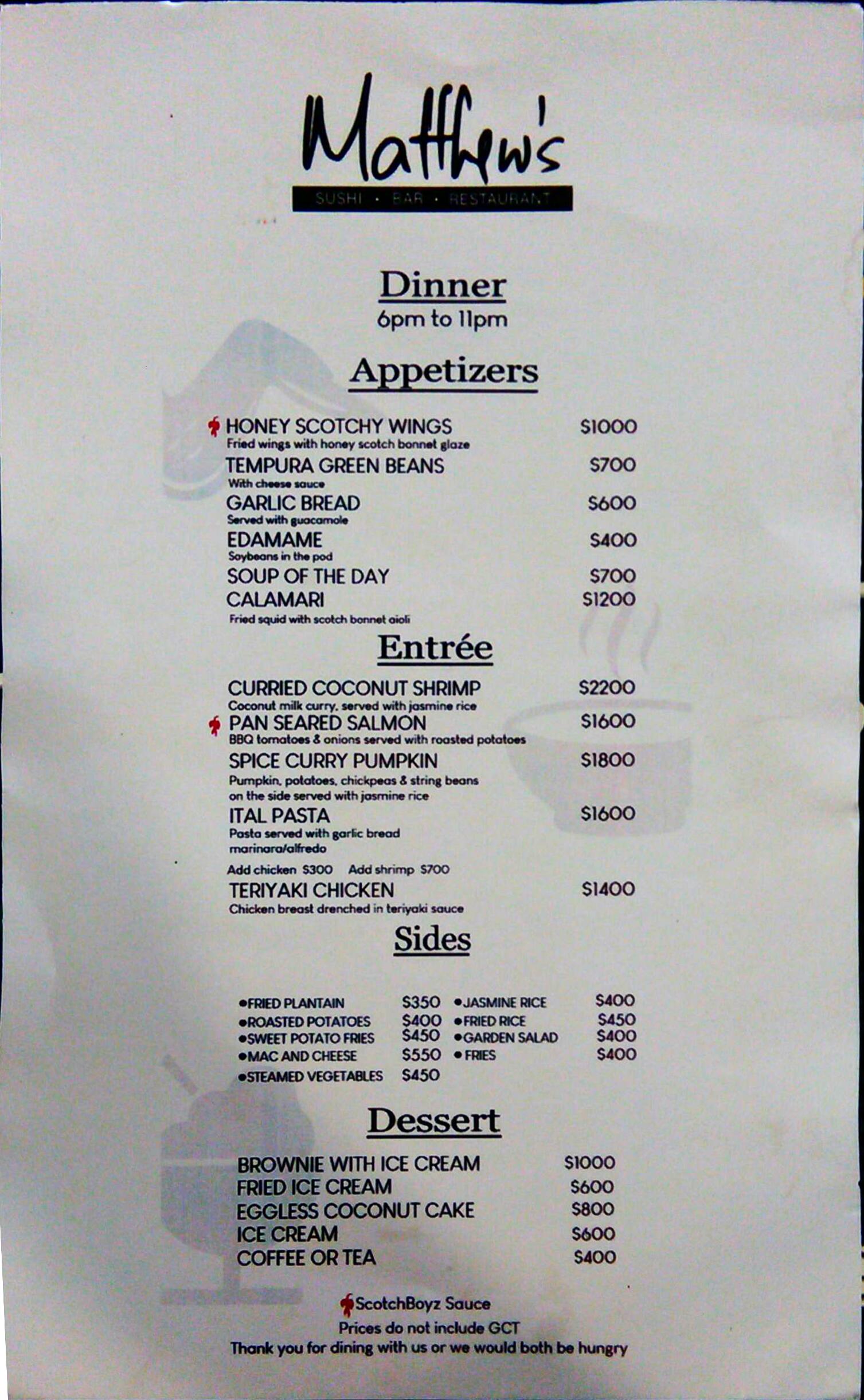 Wish nothing but great success to Matthew's. It is nice to see another option in Negril.