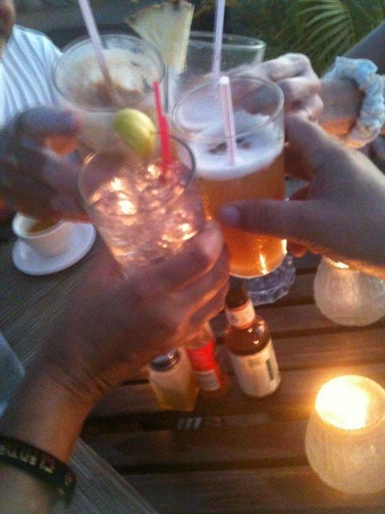 This picture was taken by my friend with his cell phone. It was the four of us toasting a fantastic day in Negril while watching the sunset from Ivan's. I have a lot of better quality photos but none match the memory of this moment.