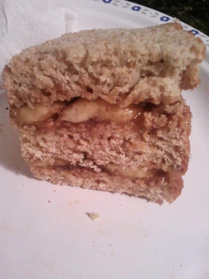 Here is a wonderful little snacker... Almond butter & banana sandwich from Eco- which also turned into the perfect late night munchie!