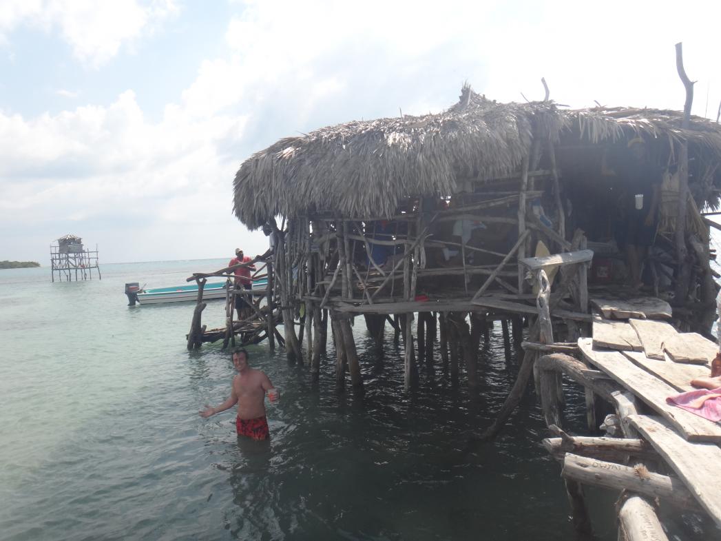 So we pass the "apparant" danger and then pass the infamous Pelican Bar. We wave to the crew as they too are on a boat and just about to get things set up. We let them know for later... "two fish!"