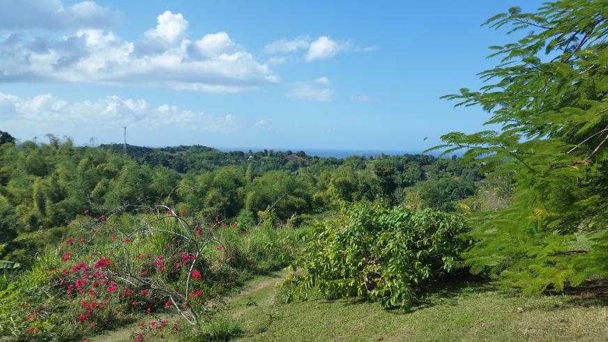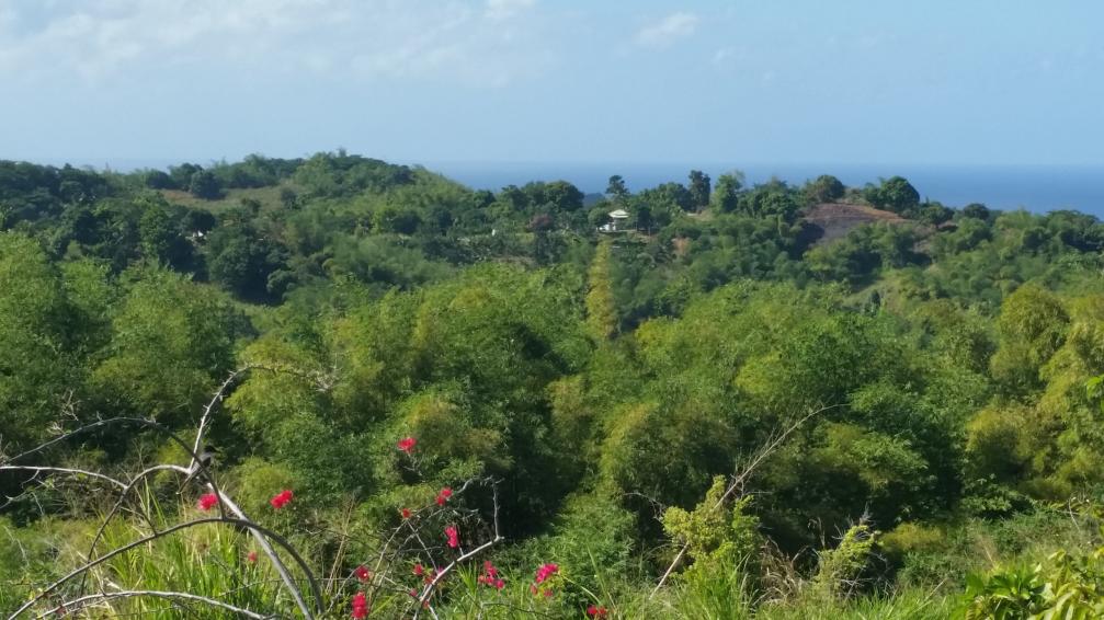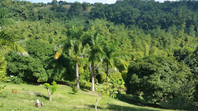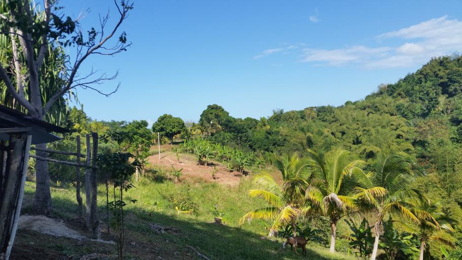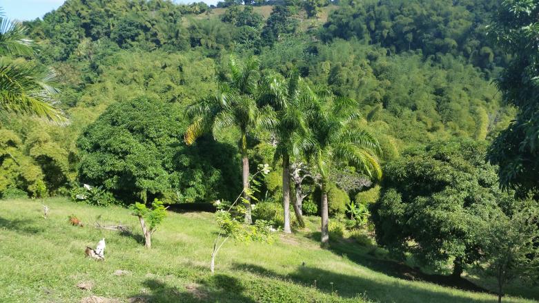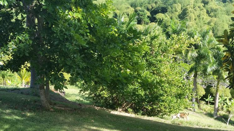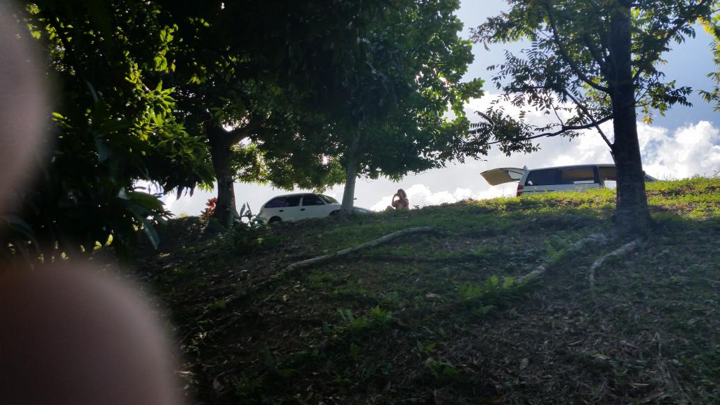 we left Dwaynes Moms area, and headed for a place to stretch our legs...up, up, up the mountain we go...we arrive at a place of breathtaking beauty...these pictures do not capture the beauty of this land...It is owned by a dude from Texas...came to Jamaica about 40 years ago...rented a small place from dwaynes mom....very primitive...friends and family would visit and wonder why he was living like that...lol....cashed in everything he had, a couple thousand dollars, bought this piece of property...it was a sugar cane field, all over the hills...over the years, he worked the land, clearing it down, and planting several hundred fruit trees...he now lives off the land, sells fruit, etc...has a 30 ft waterfall, and creek that runs through it....this would be the dream....only 30 minutes from negril, but away from all the hustle...if u look close in a couple pics, you can see the water, and Negril cell tower on the far left...