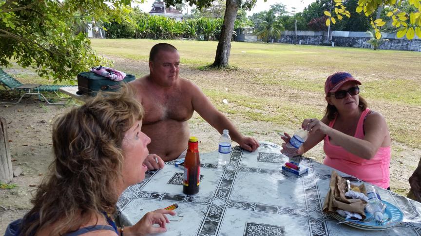 today was our moving day...we are moving to white sands..we store our stuff with francis in the office, and head out to the beach...everyone is hungry...Niah's pattys is close by, so we head there....