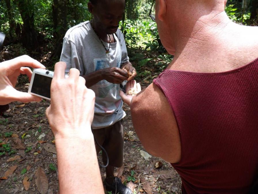 As we are taking the fruit back to the room, I hear a big KABOOM right behind me and I swear to you I just missed being clobbered in the head by a falling breadfruit...I am serious, the witnesses can verify, that thing would have knocked me out....I will tell u this, when I walked that walk back to my room, everytime from then on, I was looking up, and not walking under the trees...very scary...stupid place, even the fruit had it out for me....hehehe...