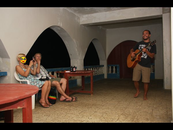 The vibe in the stage room at Pee Wee’s this night is unlike anything I’ve ever experienced. Bare light bulbs illuminate the heavily patched plaster walls. The place feels ancient, as if we’ve drifted back in time several hundred years. The air is thick with humidity in the cooling evening air, but it is not cool. It is perfectly warm. The sea can be heard against the cliffs below us as we sit against the ledge wall. Perrell serenades us with a couple of lovely songs and we are all drifting in a beautiful sea of tranquility. Except for the occasional loud interruption from our ex-pat bar mate. She is merciless with him and he gives it back a little here and there with a wink and a smile. “Now I’m going to play a little love song,” says Perrell and as he kicks into it she is running up to the stage floor. “Dance!” she exhorts, “Get up and dance!” and she is all arms waving and legs kicking. And she keeps her feet! Again, mad respect in those hooker heels ex-Patty! ;) Well, you ain’t gotta tell me twice and with that I’ve grabbed Sweetie Pie’s hand and we’re up and swaying. We notice a few moments later that Hubbity have joined the party. It was a beautiful song and a perfect moment. A private concert, serenaded and dancing on the cliffs at Pee Wee’s in Negril, Jamaica with an absolutely incredible group of people. Still today when I think about it, and probably forever, WOW!!