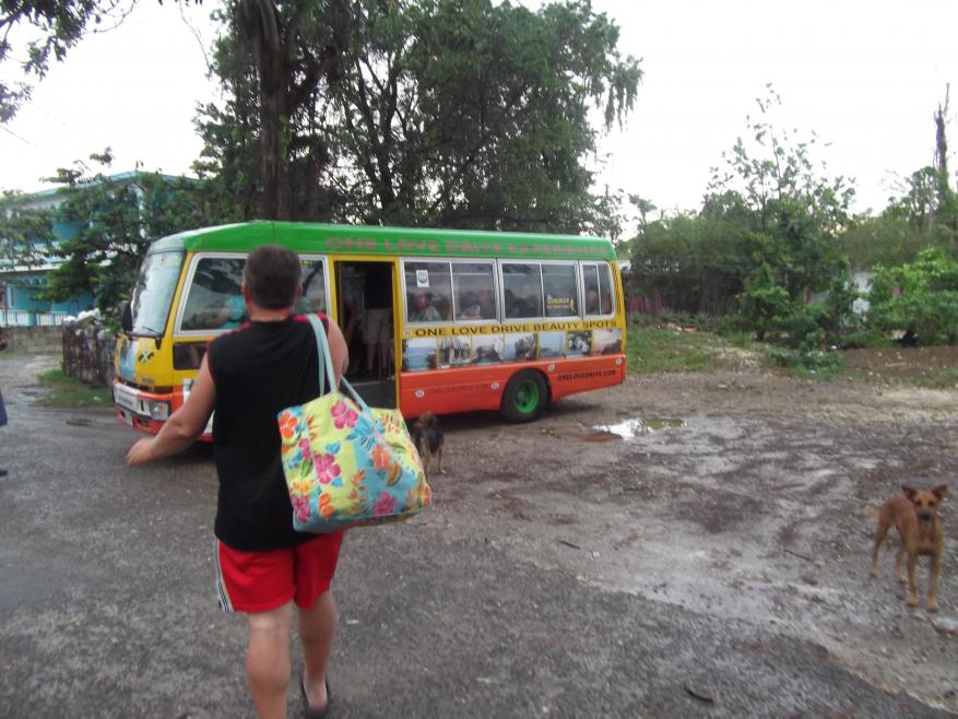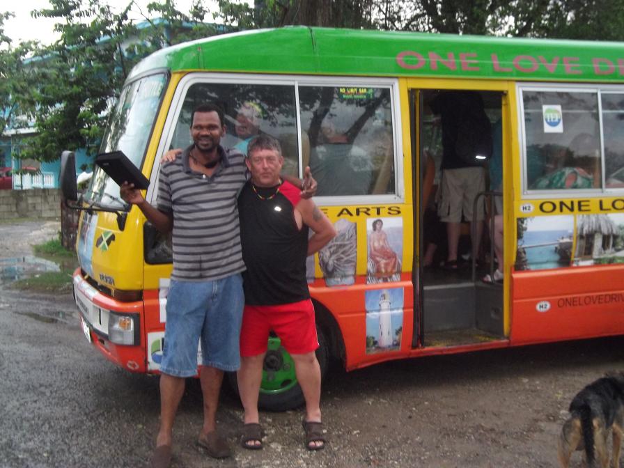 we drive up one love drive, looking for the party bus....pass xtabi, no bus....coming on Negril Escape, there it is, says my driver, but looks like he is leaving...ok, just follow him to the next stop, I tell the driver...He asked me if I wanted on now, and I said yes, and he just pulls in front of the bus and blocks it in....we get out of the taxi, and load up on the bus....Lenbert is surprised, and all the guests were really curious who we are....I tell them we love this bus....this bus is full of all inclusive guests....and Lenbert put on some oldies but goodies music...I ask him whats up,and he said he has tried all types of music, and this is the only thing they responded to...