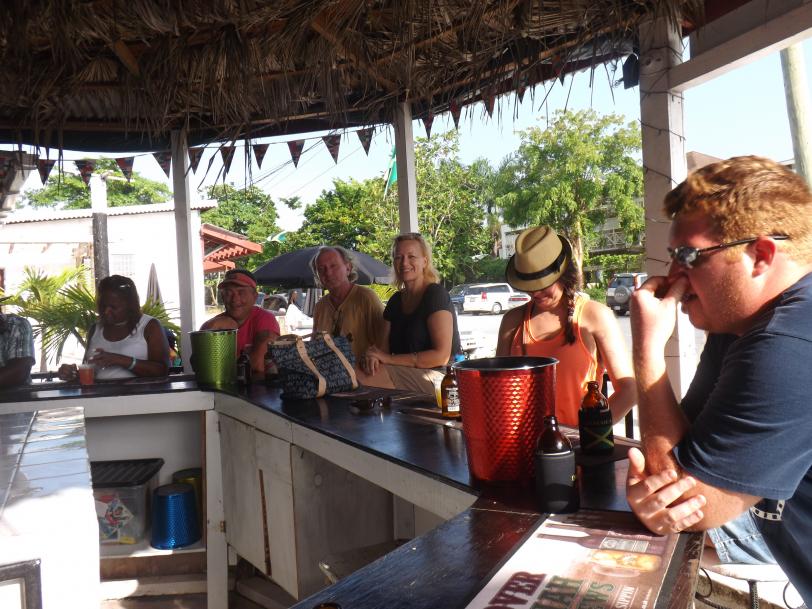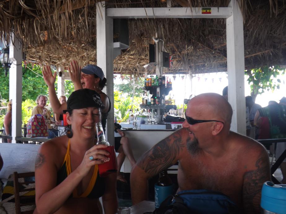 we go to drifters on this friday afternoon...drifters is the new hot bar on the beach....we spent several days there and enjoyed it every time...10.00 for bucket of beer....400 for hotdog and fries...on this friday we had a great gathering of boardies and friends...Lisa, Rob, Flip & Jackie, Big Shiny and Mango, Joan from st anthonys, Mmoffat1980, Babelew, Spreadlove, Tattoo Charlie, Robin Banks...