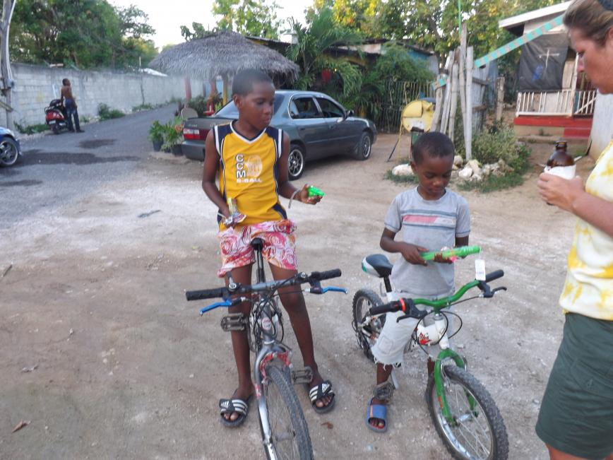 Janet and I want to walk back to Negril Escape and take another pic from the lighthouse...on the way we see a couple kids..