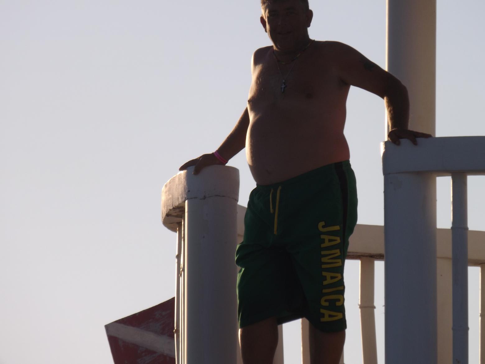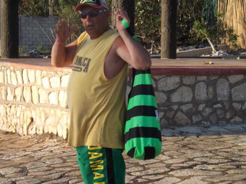 Jamaica Terry--hat, shirt, swim trunks, and bag...lol