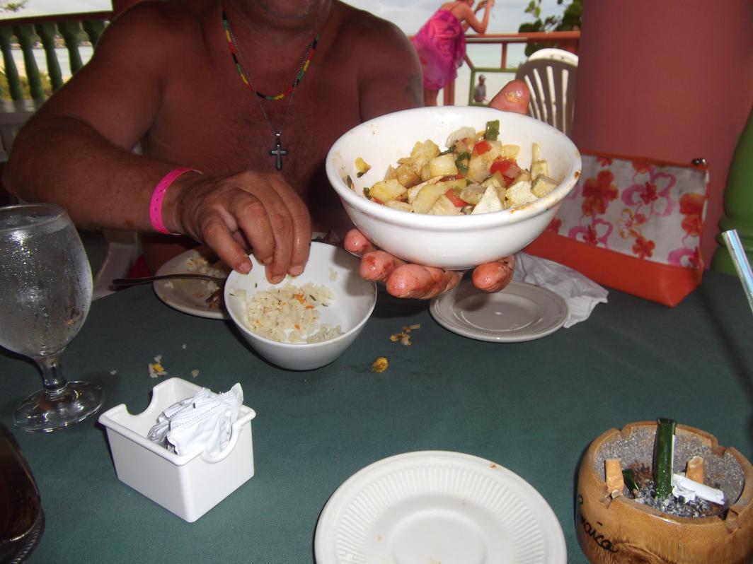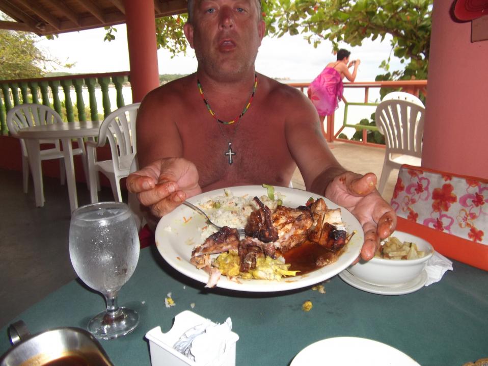 well as it is delivered, Maureen says we are special, cuz she made us a feast.....we had soup, creamy chicken pumpkin, and bread, then jerk, and curry chicken, rice and peas and home fries and a salad....Janet and I both agree, it is the best meal we had all trip, we left there full and happy....