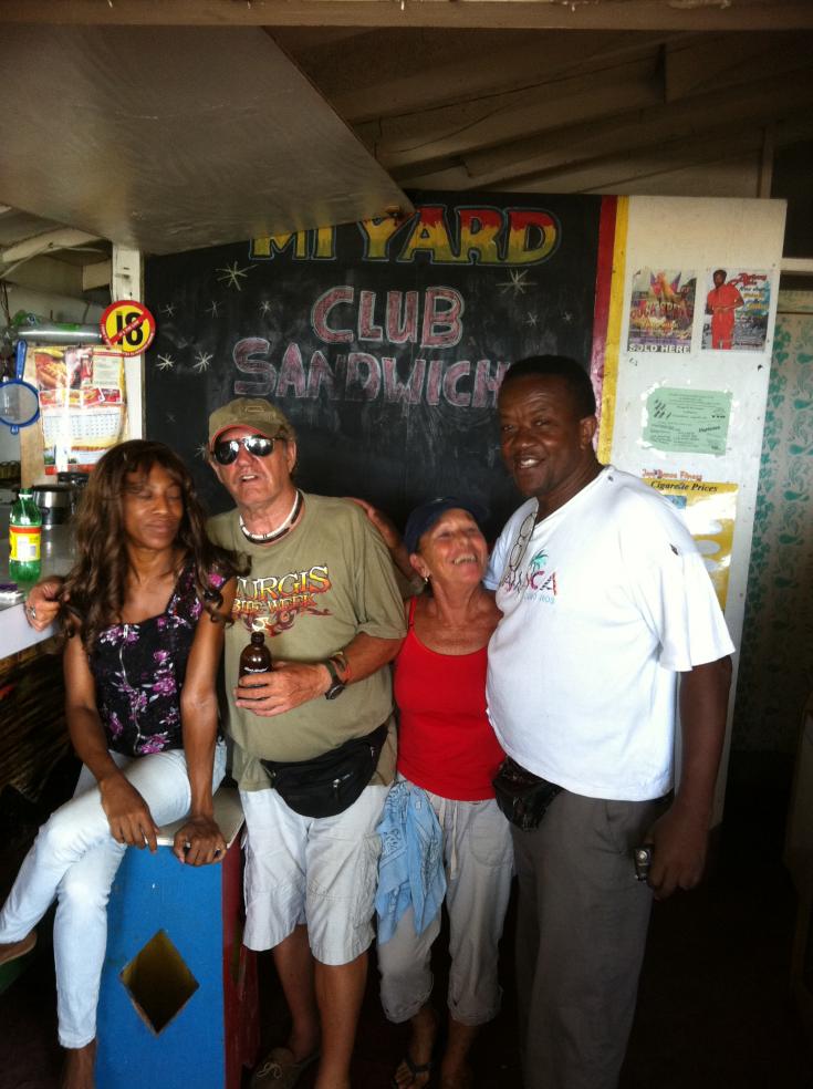 Attachment 3571Attachment 3572 The bus gave us a ride where ever we wanted when the crawl was over so Jaret and me decided it was time for some of Eddie,s jerk chicken at Debar. They have a new watch dog!