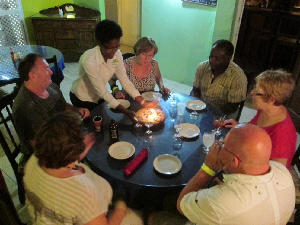 We then decided to go back to the hotel and have a little rest and shower before the “Party”. I had arranged in the morning with staff to have a little birthday cake made so that we could celebrate hubbie’s day with our own Birthday song. Not too long we heard the music coming from the bar/restaurant and decided to head on down. Much to our surprise it turned out to be a private party - only our group and the staff. This was a Sunday night - not many guests at the hotel. We had a couple of dances or at least “M” of M&G did J and then our B-Day cake arrived and we sang happy B-Day - a couple of drinks and then off we went to pack up and get ready for bed.