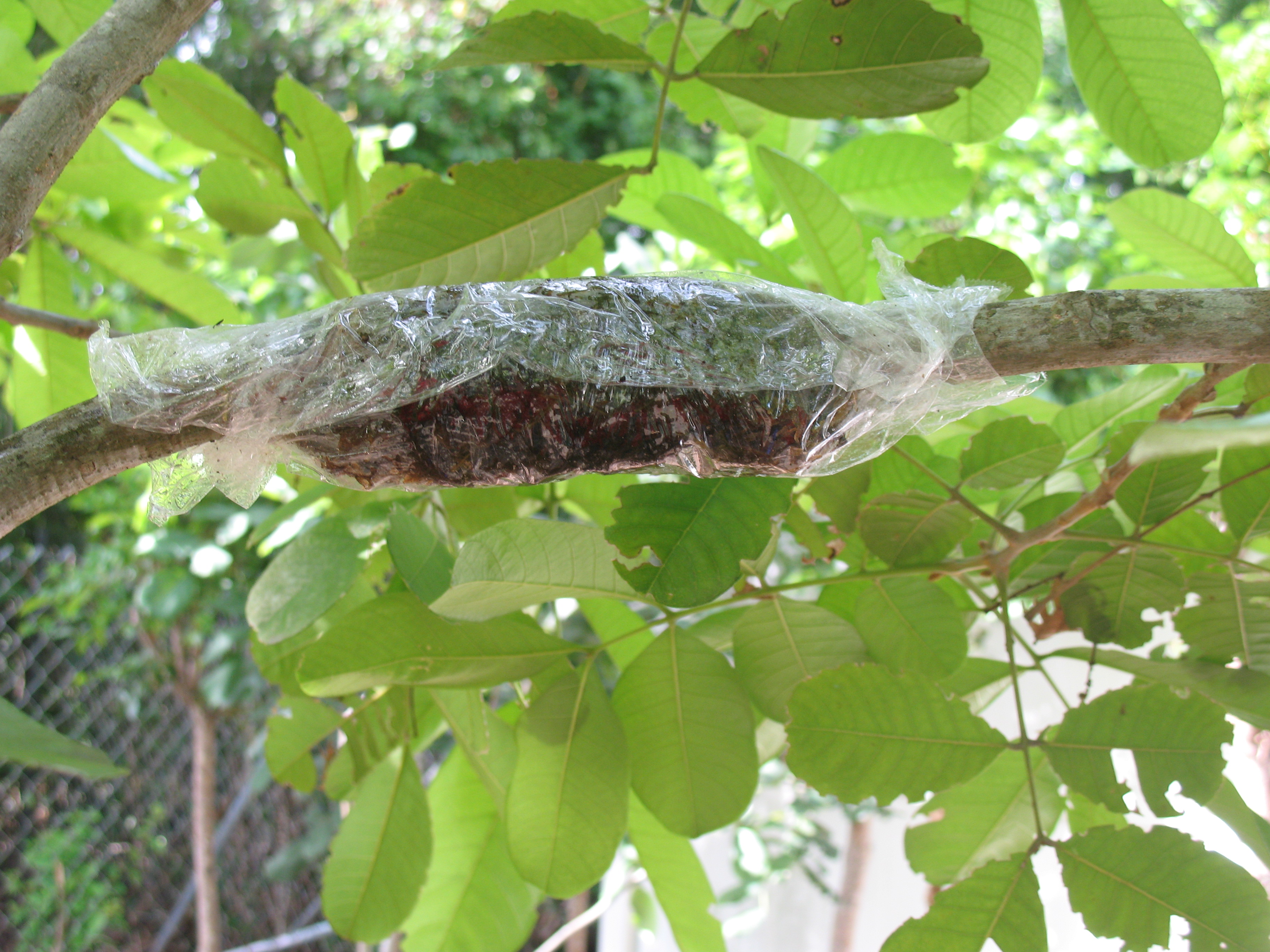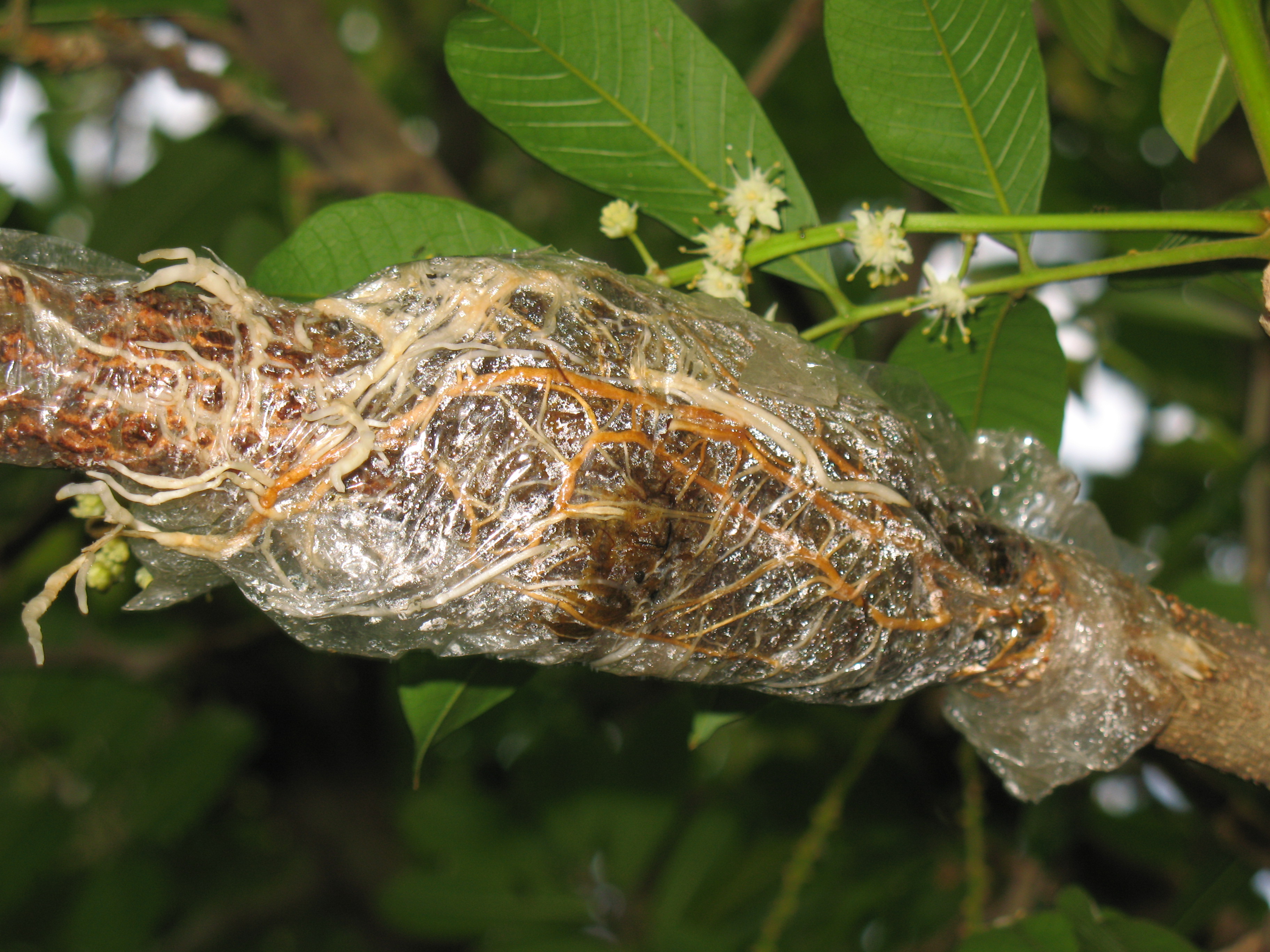 here are some pics of how I air layer my ackee trees (and all other fruit trees)...use wet sphagnum peat...wait about 3 months, or until sufficient root growth appears...will immediately start bearing fruit...