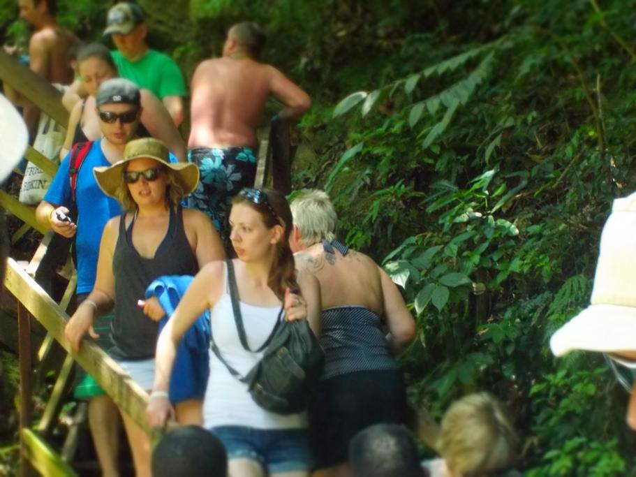 The views from the bus was great, there’s some great country once you start to go inland and before long we arrived at YS. The weather was wonderful, warm and sunny, a perfect day, Marley had even organised that properly. Everyone off the bus, turtles totter here there and everywhere. So what now? We have to get on a trailer and get towed up to the falls. Yeh right!!! These are turtles after all, some make the first trailer, some don’t. ‘We should stay together!’………… Yeh right!!!