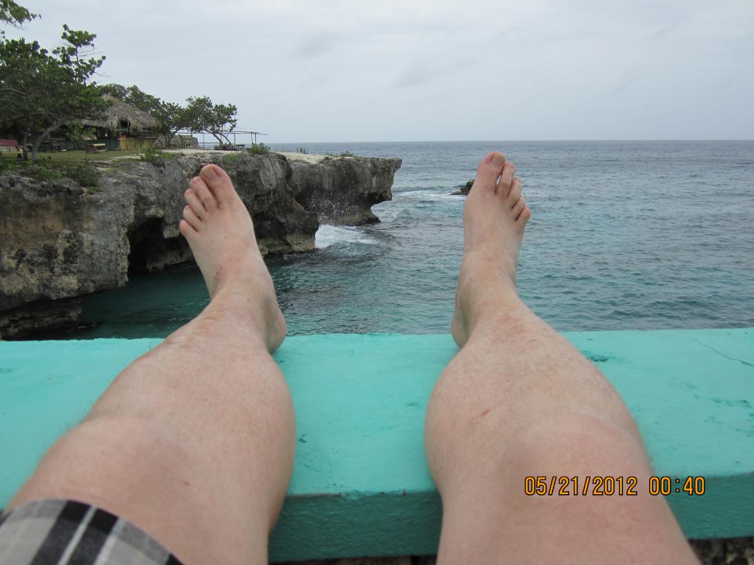 The calm. The water hitting the cliff. The otherly world sort of place that it is in Jamaica. My feet in this position: