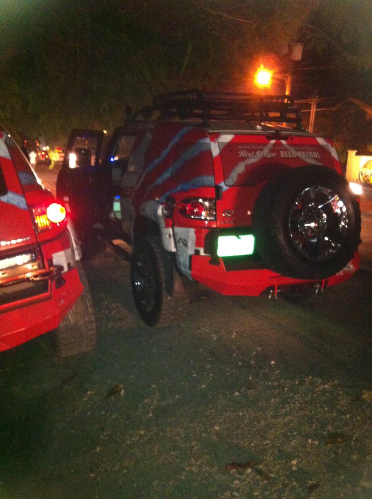 I score that cool Rumbar apron ondaroad, they handed them out to all the street vendours by the Jungle, and I had to get one,lol The next pic is the Redstripe patrol, we saw them around a few times for ATI. And the third is a shot of the new 50th bills.