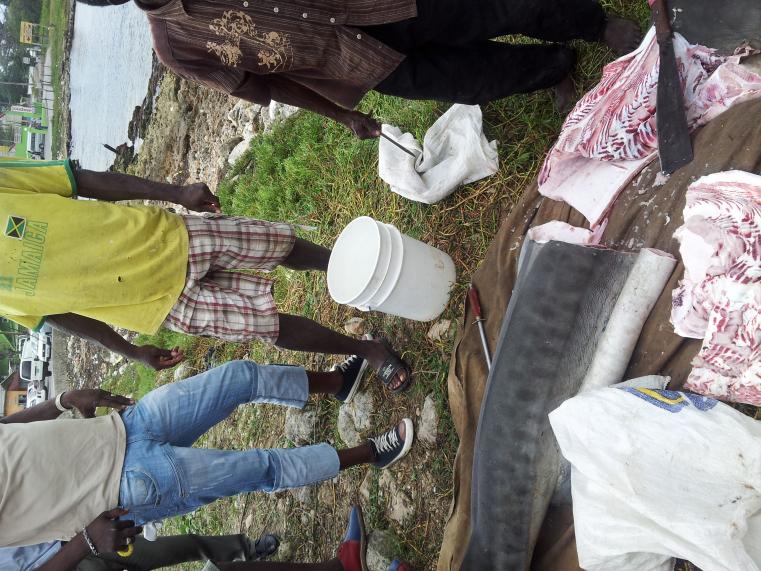 Don't you just love the corner bar!! Some of the best jerk I have ever tasted and a reasonable price. Interesting place for sure. Jan 8th, there was a big crowd across the street from there...in the early afternoon. Our route taxi stopped to see wha gwan. They had killed a bull shark there that apparently had gotten caught up in a fishing net. That sucker was huge and the first one that I have ever seen. It cracked me up that they were charging 100J to lift the blue tarp they had put over it and give one a view of it. They had it up in the back of a pick-up truck. About an hour or two later, they had chopped off the head and were selling portions of fresh shark steaks from the truck. Only in Negril!!! :) Gotta love it!