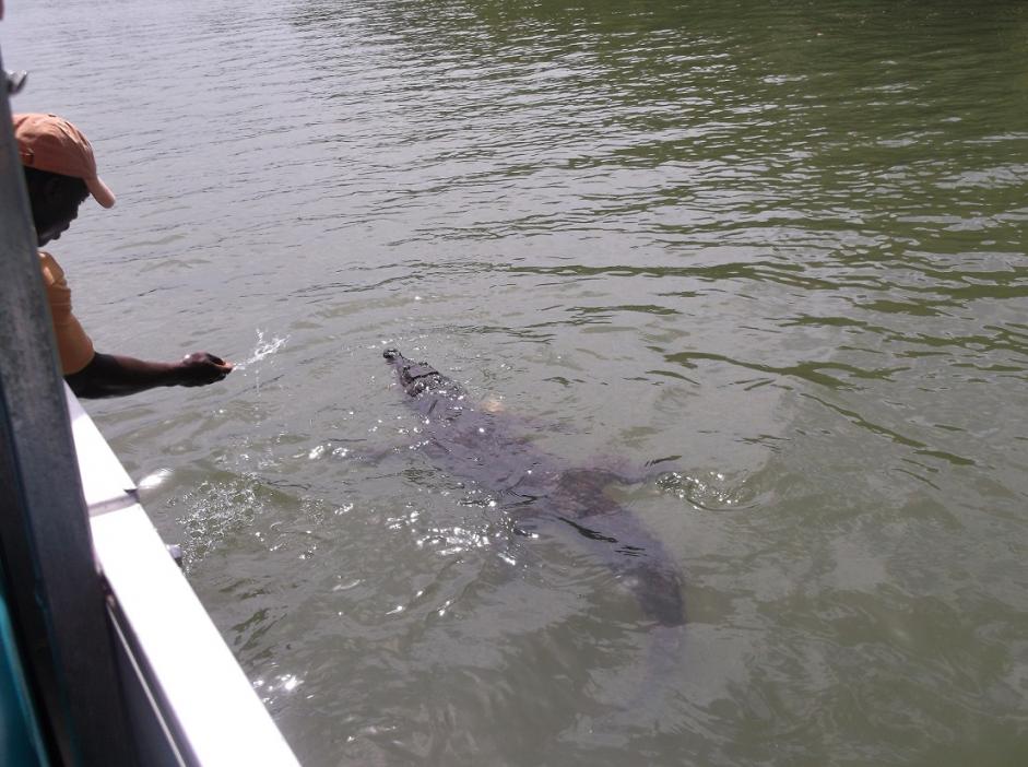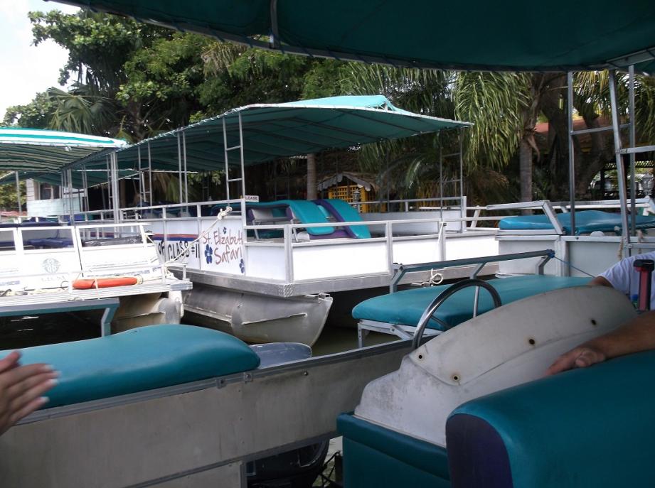 Yesterday we did the 3 site southern tour..Black River, YS Falls and Appleton Distillery. It was booked through Island routes which Sandals resort has a contract with. (Grand Pineapple is a Sandals corp resort, but not designed for only couples, and a lot less of the ameneties.) We went with another couple from South Carolina. They were newly weds on their honeymoon. It was kinda cool hey were first starting out and we are on our 30th. anyway.. the ride to the black river took forever..due to the poor condition of the roads. They are working on them due to the Sandals resort opening up in Whitehouse. We arrived after an almost 2 hour drive. We headed to the boats.Attachment 27790 Then it was out on the river..It was amazing to see all the various species of birds. Right now is the nesting season for some of the species.Attachment 27791 Neaby was a crocodile named Phillip. he comes out when the boat comes as he sometimes gets a treat from the "captain". The captain said that they don't feed them all the time so that the crocs don't get dependent upon handouts. That way they still have to hunt. Phillip stays by the nesting grounds to pick up any hatchlings that may drop into the water.Attachment 27792Attachment 27793. We then headed out into the mangrove forest. It is really cool how the branches drop the tubes down to the water to pull moisture up. We then headed out to another area where there were 3 crocs..two males named Tom & Jerry and one large female Josephine she was about 12 feet long. There was this bird hanging out around there looking for some baby crocs..evidently according to our guide it's the circle of life..the bird eats the baby crocks..and if the crocs make it later they eat the birds!Attachment 27794 I'll post about Appleton after lunch.
