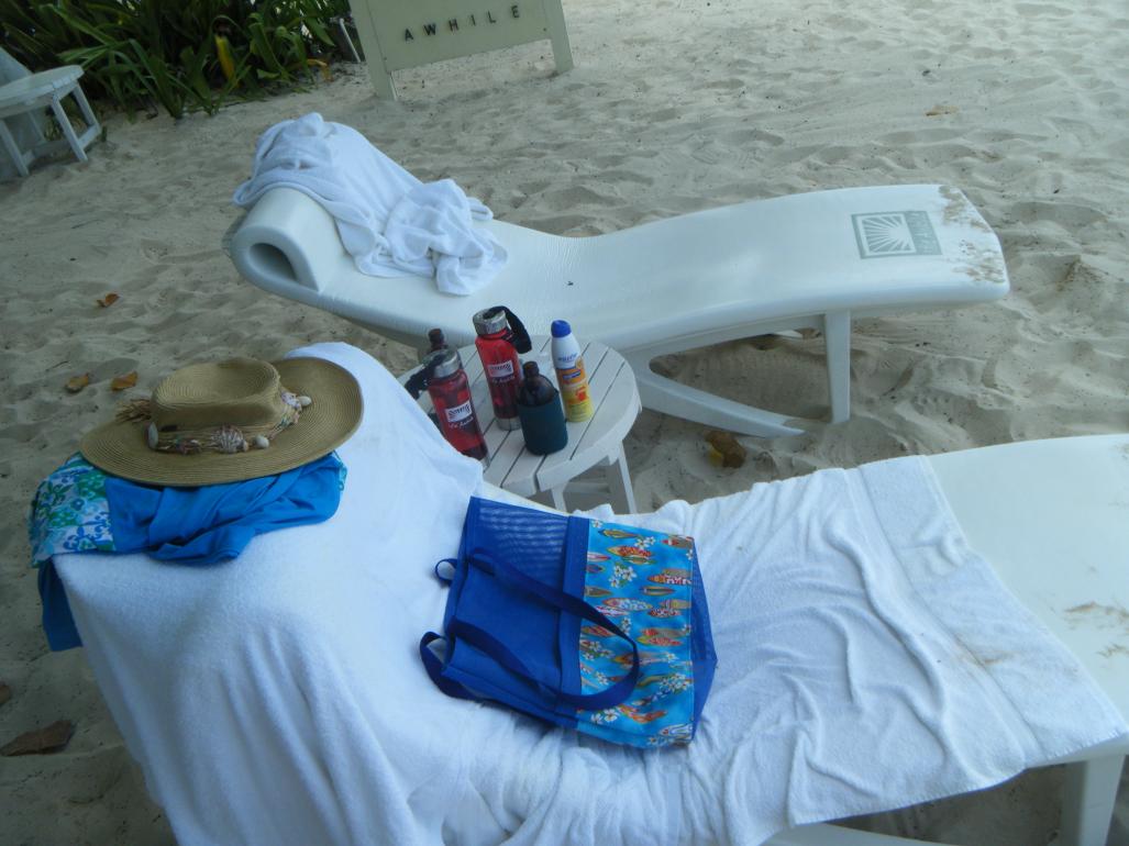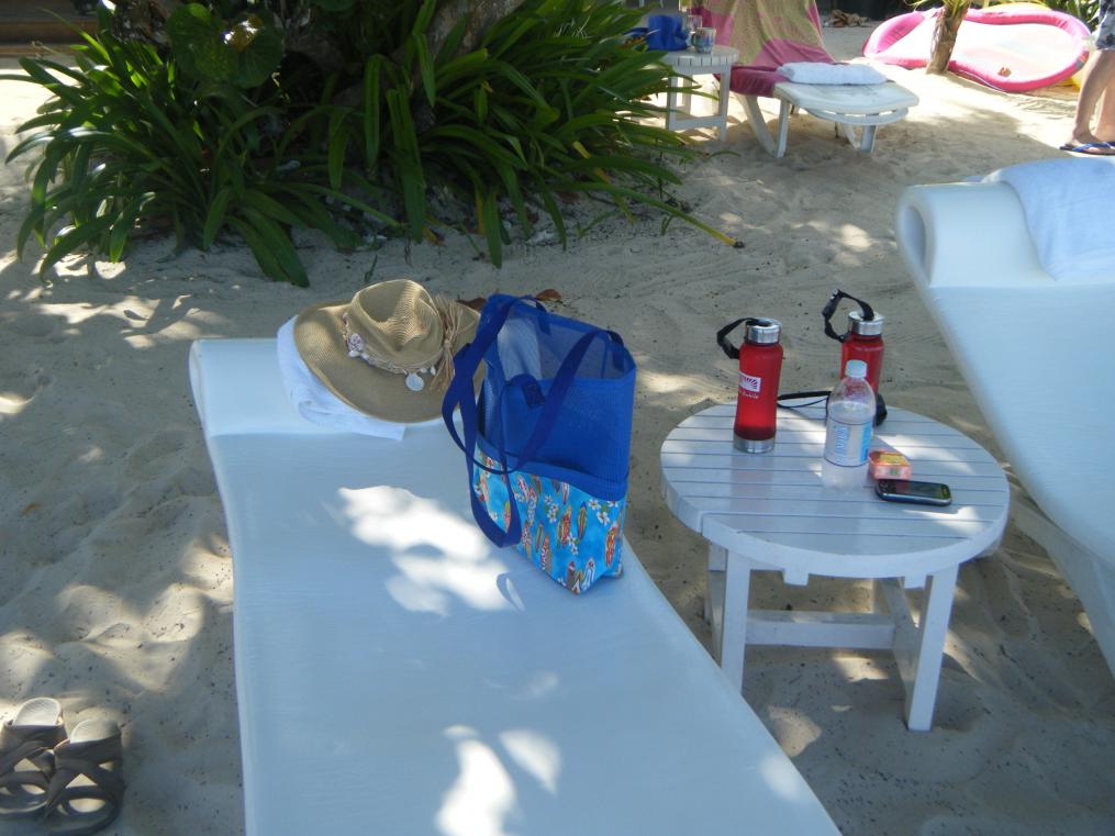 After checking in and chilling out on the beach for a little while, I have to say, the floats on the chairs at IA are nice and we also enjoyed the reusable bottles they give you for water. Well, heck, everything there was nice and the service was awesome. And we enjoyed many of the other people that were there along with the vendors and others who hung out right there between IA and Charela.