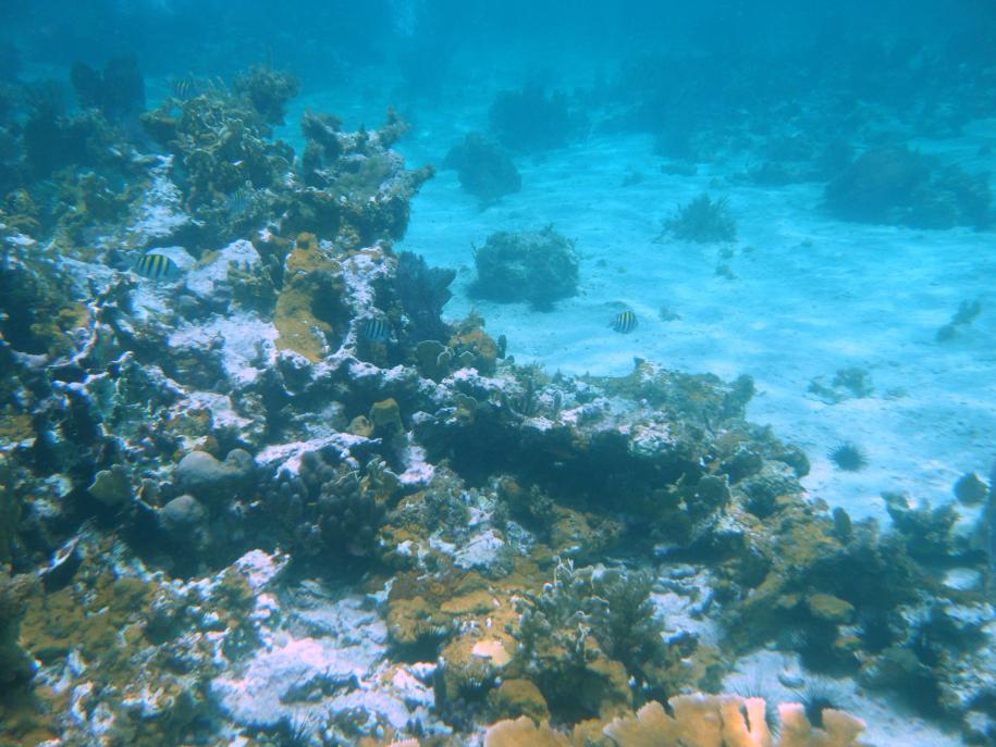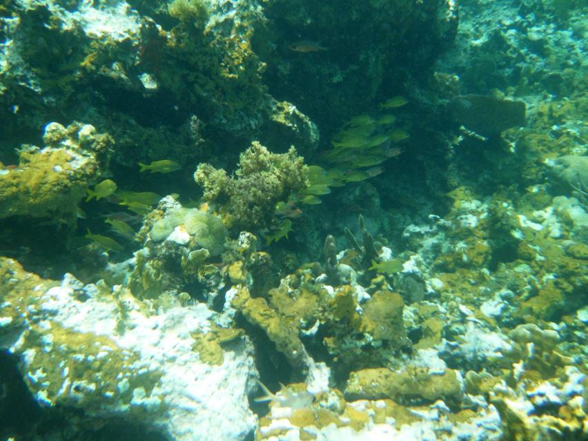 I love to snorkel. My DH knows that if I get a couple of good snorkel trips in, then I will be a happy camper. And we all know that if your wife is happy, you have a better shot at it too. So we had chatted some with Captain Kirk and later that morning we loaded up our gear and headed out to the reef. This trip we went to where some of the AI resorts and divers tie up. We have an older model Fuji waterproof camera so we have quite a few snorkel shots, I thought the reef looked pretty good and there were quite a few fish, like swimming in an aquarium.