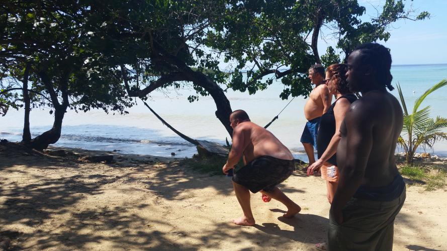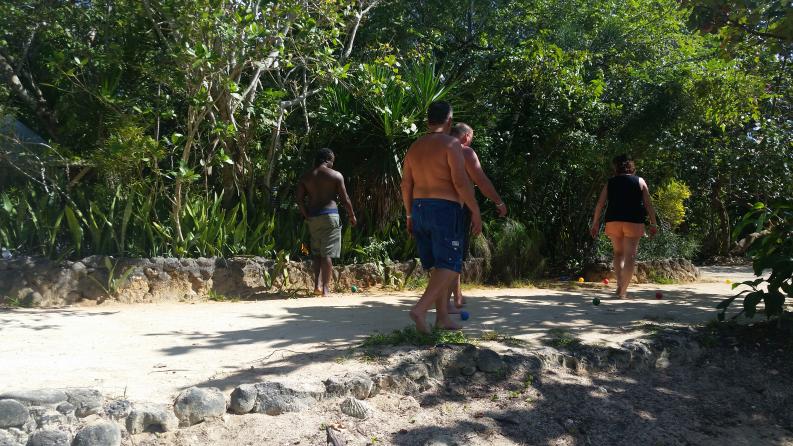 we went on to Rhodes Hall Plantation...the guard at the gate called someone...Janet and I had been here one time in 2010 for a pizza party/web cast...they have a cool infinity pool we used then....the guard said the grounds were closed and the pool was only for guests...didnt seem like they wanted our business today..so on to Half Moon Bay...we played Bocce Ball...It was really a fun time...our buddy Shane is like a big kid, and loves to play games...
