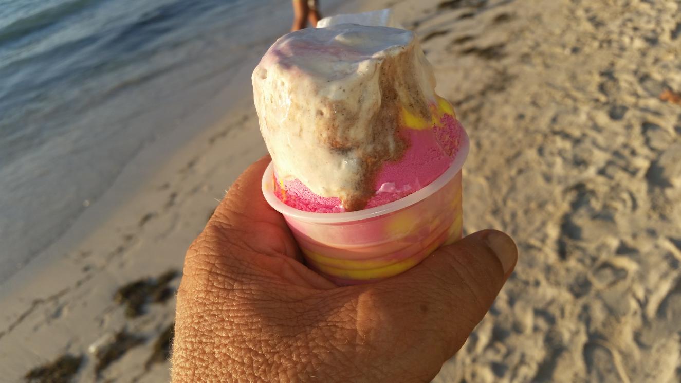 because i was the only one who ate breakfast, we stopped by a cook shop, which is set up in the trees across from boardwalk/point village...have eaten here before on the way back to the airport a few trips back....babyface got out and was looking at what was being cooked...it was HERE or all places that he was asked to put a shirt on...in the middle of a outdoor grove...lol...been walking around for almost two weeks, and here in the outdoor cooking area....lol...he came back to the car, got in and told us...I HAD to get out and take a picture....lol....shane was the only one who got a box....lol