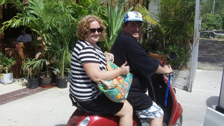 “Well,” says Gerry,”We’ll see…” and he and Suzie Q saddle up for adventuring, leaving me to ponder my various options for failure. Before they roll I run and grab a pic. This sight, seen a dozen times in the following week, is locked in forever. Negril, April 2012 baby…