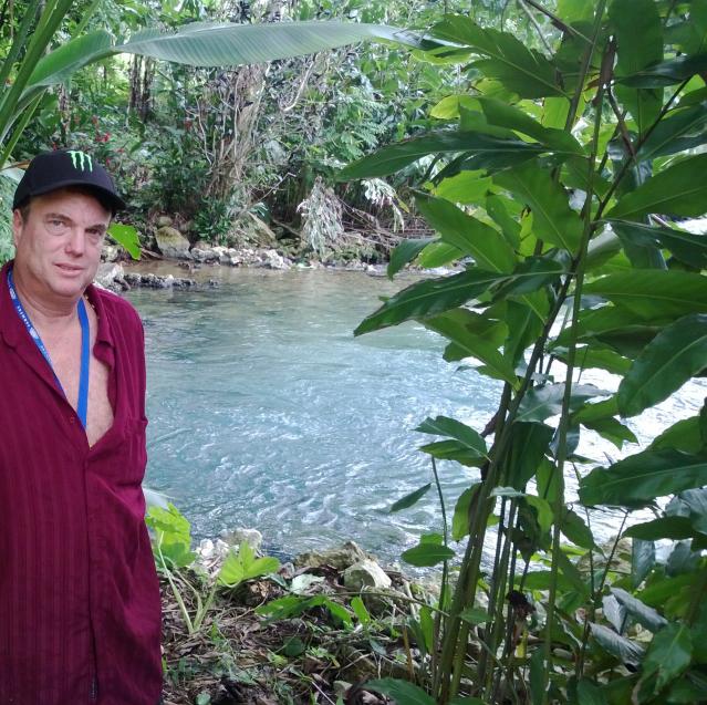 I filled up with gas, met Charlie and few other yardies for breakfeast at Sea Star Inn, and then decided to round up a little posse to head to Roaring River and Blue Hole. Percy, Charlie’s private driver/errand person, drove us. We made a right at the roundabout, up the hill through Sav La Mar, and soon enough we were close to Roaring River. I called my old friend, Robert, who would guide through the hustlers to the Blue Hole – NOT to be confused with the blue hole at Brighton, which is a joke in comparison.