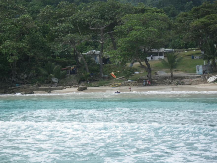 I will package our last 3 days in PA together as they are almost exactly the same. The daytime weather has really improved, the last 3 days we only had a couple very light showers that only lasted minutes, otherwise mostly sunny, today was completely blues skies all afternoon, we baked real good. For a few reasons we ended up going to frenchmans cove each of our last 3 days. Even though it costs 700j a person (today I juiced the guy a bit, I told him I heard that it was pay 2 days, get 3rd day free! He laughed and told us 600 each.), it has a nicer sand beach, gets better sun, the only people selling stuff are the servers delivering beach loungers, food, drinks, its close to PA, you get the picture. The downside is the swimming area is small and its usually too rough to snorkel around the cliffs. Plus, the freshwater river that feeds into the sea makes it colder than the other beaches. The upside of the river though, is once you get accustomed to the cool water, it is pretty clear and a good place to snorkel as its full of fish. I spent at least an hour in the river today, snorkeled up to a bridge crossing and back, hanging out with the fishies. Frenchmans cove is definitely a place where you can relax on the beach, something I like to do. Its the only time I will actually read a book (a novel, not my usual magazines). I managed to finish one this trip, a non-fiction story of a guy that quits his job and hitchhikes his way across the US with no money. Took me probably 5 days to read it, my wife started it this morning, she will finish it before bed tonight.