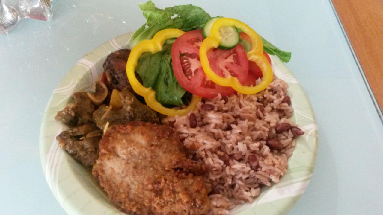 I'd subtract the rice and peas and substitute a healthy dollop of Renta yam - as creamy as mashed potatoes! Or subtract the rice and peas and substitute some good "season" rice or pumpkin rice. I like rice and peas, but only if done the "old fashioned" way where grated coconut milk is used (not coconut milk powder) and most places in Negril skip this very important ingredient. It's a bit labor intensive maybe, but there's no comparison in taste and bland rice & peas gets really repetitive and boring as heck when served with every meal of the day, every day of the week.