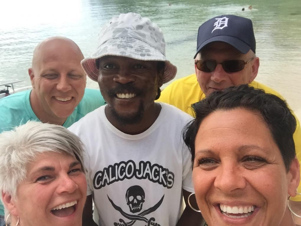 So I felt comfortable until I wasn't. You know when you are snorkeling and you can hear someone yell? I heard someone yelling my name - loudly! And over and over again. I stopped and looked towards the dock - we were quite a ways out by now and Tom clearly hadn't heard. I see Brian waving his arm in (what I thought) was a come back motion and yelling "JEN!" Whelp - that's all it took. You only have to be faster than the slowest person. I FLEW across the water...seriously...like Jesus...across the top towards the dock. Poor Tom didn't realize until I was long gone. Brian and Amy were in tears laughing and I may have just run a marathon....fear and fast swimming will do that to a girl! Tom eventually joins us and Brian and Amy were still laughing at me. Brian explained he was pointing AT something - maybe a turtle or a ray? Something was near the top of the water and they weren't calling us in - but pointing it out to us. However, I'm done now. My heart calmed down a bit and I got out of the water.