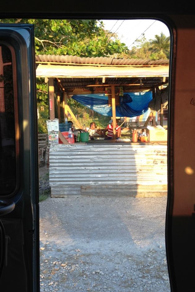 Back on board Chicken’s Magic bus. Wheels go round and round. Next stop? SH*t I don’t know where we stopped next. A roadside bar maybe? Or Biggas? Well, we made both of those stops I just don’t know what order that happened. The little bar had a facility and also had cold drinks. This is where Guirigay turned me onto Stones. Oh man I love that…what is it…gingerwine? Whatever it’s good. Our stop at Biggas was fun, even though the man himself was not there, Mrs. Bigga took good care of us. Jerk pork and red stripe….at last!!!
