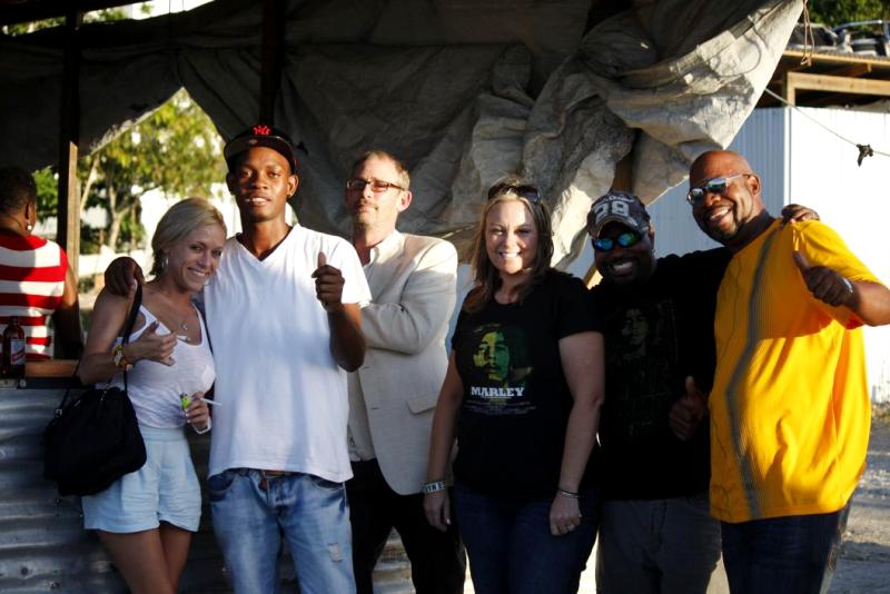 When I walked out the door into the warm Jamaican air, I began searching for Chicken (whom I had only seen in pictures). A tall, young, nice looking fella came up to me and began trying to take my bags for me. I was confused but after a moment saw Chicken’s familiar face. He explained to me that Ricky was his son, so I gladly handed over my stuff and made introductions. I liked them both right away. Chicken soon pointed me over to the bar and informed me that I had friends waiting for me there. OOOOOOMG….my first boardie encounter….Dum duudda dum. Who could it be??? Make my way up the steps to the bar and right into the outstretched arms of Guirigay and SweetiePie (Who is even more beautiful in person). We were loud and excited and ready to set this sh*t off. They already had a round of stripes ready to go. I sure do like them. We made easy conversation between the three of us and Chicken and another man whose name I forget. Wayne maybe? Really nice guy anyways. We waited about an hour for the rest of our party to arrive. Right about the time we were feeling like lifelong buds…I saw the expressions on my faces friends change and I turned to see what they were looking at, but I was totally blinded by the beautiful bright smile of Marley9808 right behind me… and then it got LOUD. Really loud. Everyone was sooooo excited and hugging and yelling….such excitement that Marley’s husband Ninja (aka Ralonzo, aka Raul, aka RaOOOOOL) managed to sneak in under the radar, but that is no surprise because, after all, he is a great Ninja (with a killer smile to rival his lovely wifes). I literally felt like I had been reunited with old time friends. It was a really great feeling to be there.
