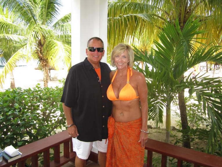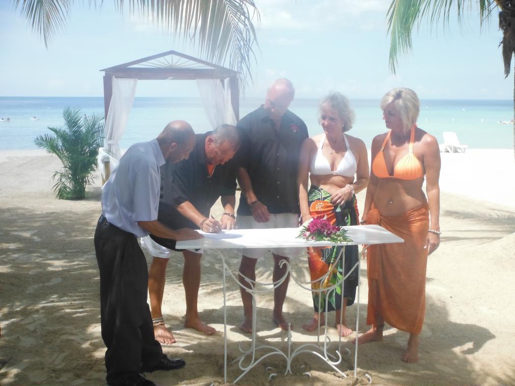 After breakfast I knew it was time to get serious and to get ready for the Vow Renewal. One point I should make is that the bride requested that the ladies wear orange bikinies with a sarong and the guys (yes including me, the Minister wear kahki's and a black Tommy Bahama shirt. This already had been an issue with the Resort, the wedding planner made a point of saying that they take the service seriously and that there was a dress code for the service. The bride and groom let their feelings be known that this is the way they wanted the service to be done. The planner informed them that the Minister wouldn't do the service if they were dressed like this and thats when they brought it up again that I was doing the service so there isn't any need to worry. She then told them that I needed to be dressed up, it wouldn't be appropriate for me to be so casual, they said no! None of you really know me, but I could live in shorts, t-shirt and flip-flops year round even in the freezing cold, and I pretty much do! When i heard of the issue I thought I was going to blow a gasket and told them that did they want me to talk with them. Both the bridge and groom right away begged me to let them handle it. They did and the service was saved.