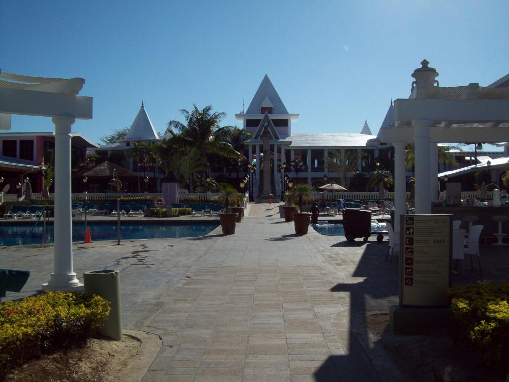 After we finish a very good breakfast we head up the stairs to make reservations for the a la Carte restaurants. At this point I still feel like I do at home, nervous, self conscious, your basic social anxiety. But I push to try to have fun on vacation. WE deserve it. So we make reservations for the steakhouse for this night at 9 p.m. (only time left) and for the Japanese the next night at 6:30 p.m. By the time we get done here its about 10:30 – 11 a.m. My other wants to take another less jet lagged look at the gift shop. So we do and I find this “beach bag” that I like it says Jamaica with the flag pattern for coloring. My favorite color is green, it has been for quite some time. OK so, My other and I decide to go back to the room so on our little walk we take in the property very nice place I loved it.