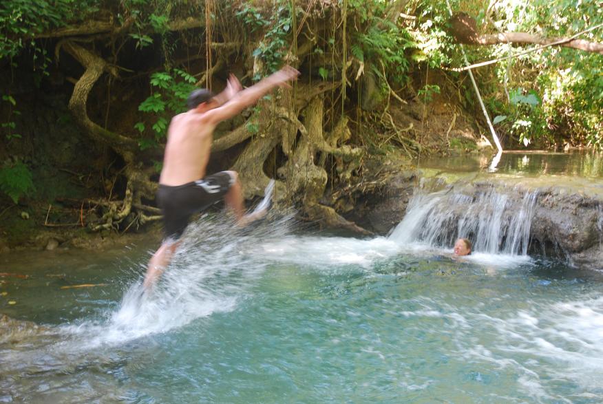 Mayfield Falls with Chicken? Super Bonus!!! Great pics, do you remember the name of your Falls photographer? Was it Eneil? Did you swim through the submerged tunnel?