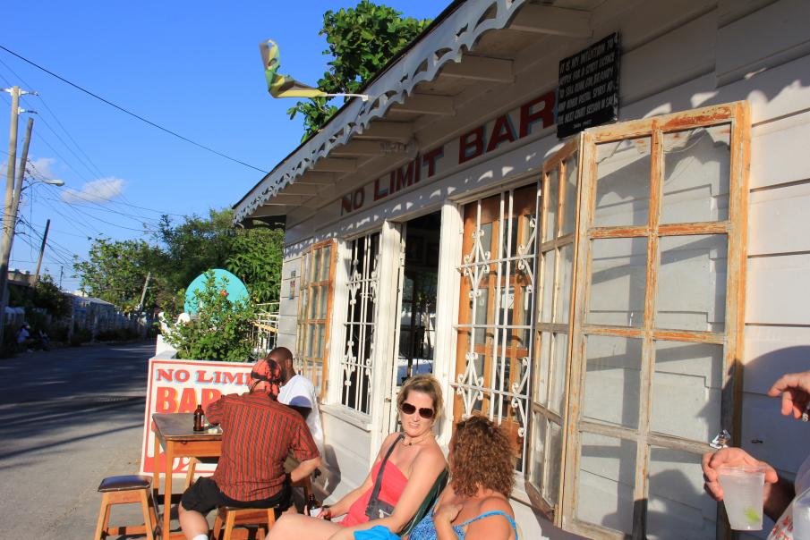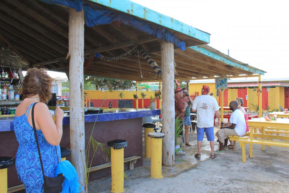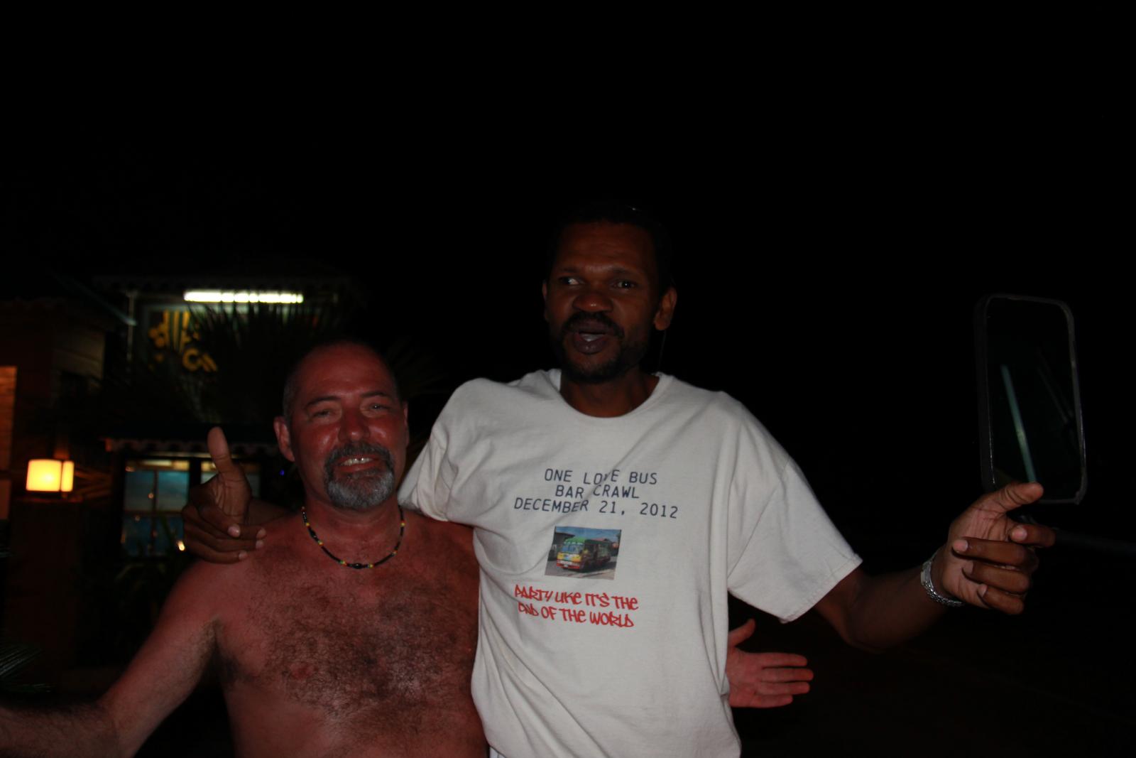 We hung out on the beach and swam a little until it was time to get ready for the One Love Bus "end of the world" Bar Crawl. Lenbert picked us up promptly at 2:30 and greeted us warmly (and by name); we knew right away that this would be fun. Already on the bus were Westendgirl and another couple from Ottawa; quick stop at Coco to pick up CrabMan and his lovely wife and we were on our way...