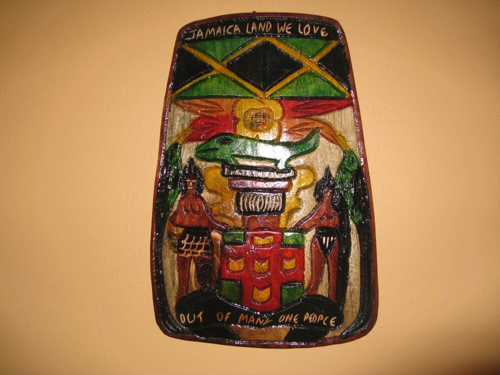 A cousin (real, not Jamaican cousin) of my likkle Jamaican friend at the time had a stall at the craft market. Normally I haggle starting about half their first offer. But he was so nice taking the day off work to drive us all around town at no charge - I paid his asking price. Only time I've done that. I was so worried it was going to break on the trip home, but he assured me the way he wrapped it in cardboard it would be fine. He even had pics other customers had sent of their carvings after getting them home. As you can see, it made the trip just fine.