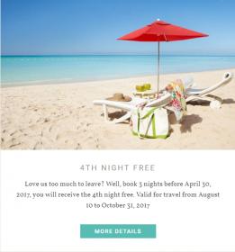 EVERY 4TH NIGHT FREE, for travel between August 10th - October 31st , 2017