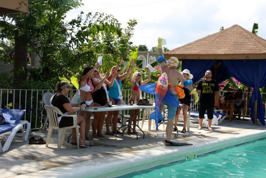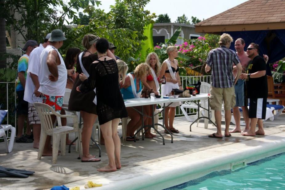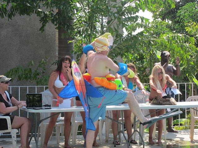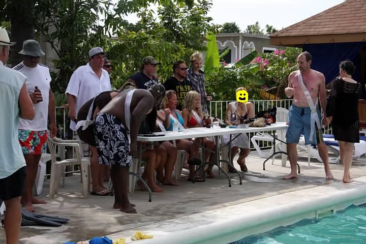 I think I was at the swim up bar when Bras started to address the crowd. Pretty sure I asked him if I could judge from the swim up bar and he just looked at me….no answer…I’ll take that as a “no”? LOL