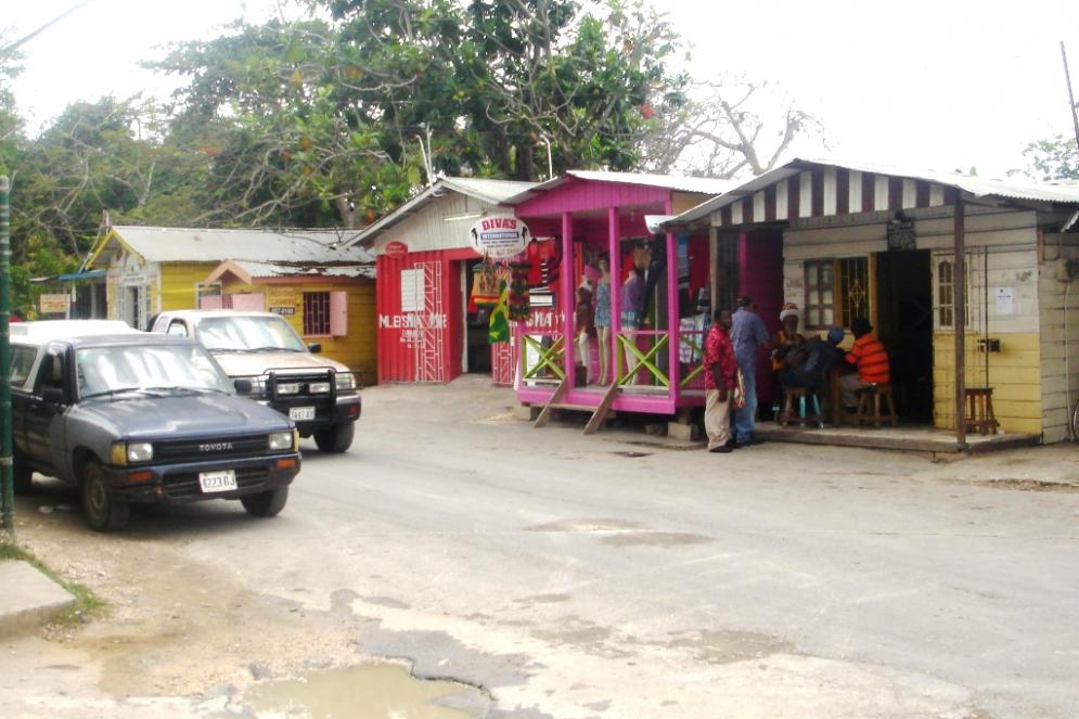 We crossed through the river and came up the bank that’s right behind Burger King. I still laugh at Burger King every time I see it sitting there in the middle of Negril. Don’t know why we ended up across the street….ATM maybe? While Jon did something (?), I told him I was going to walk across the road to check out a shop. I’m glad I didn’t have much cash on me because I would have bought everything that girl had for sale. CUTE CUTE clothes. WOW. The pink one...